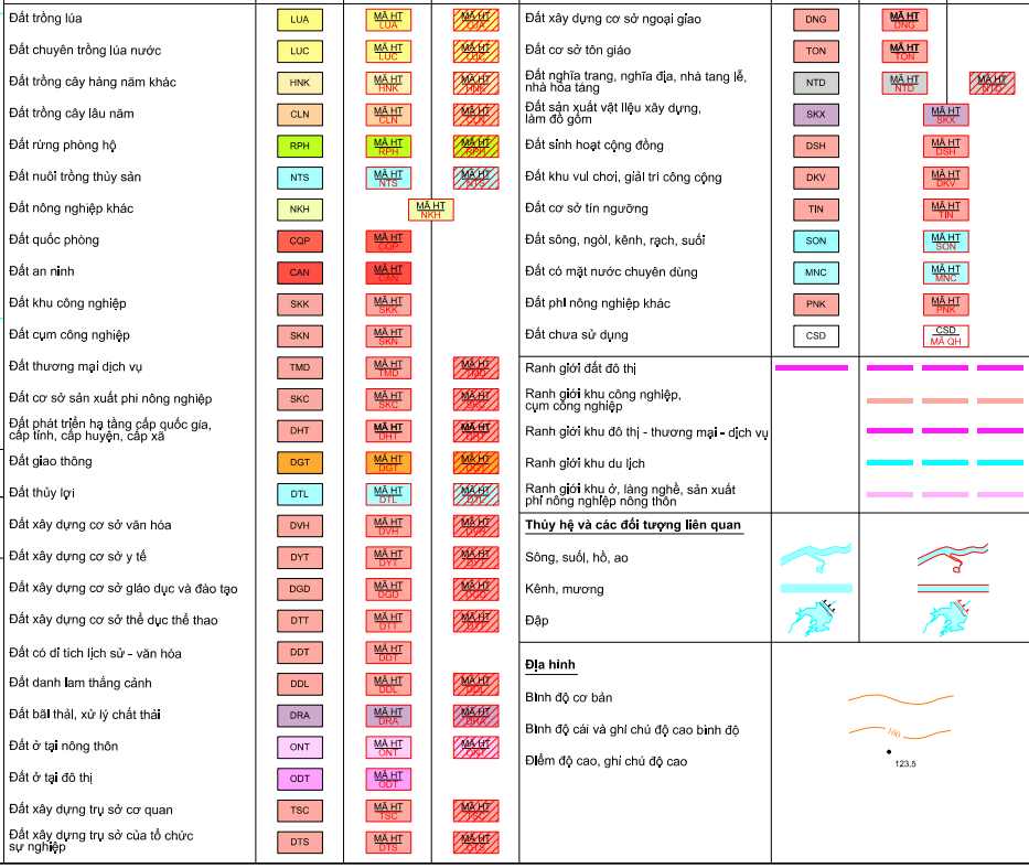 Ký hiệu các loại đất trên bản đồ quy hoạch