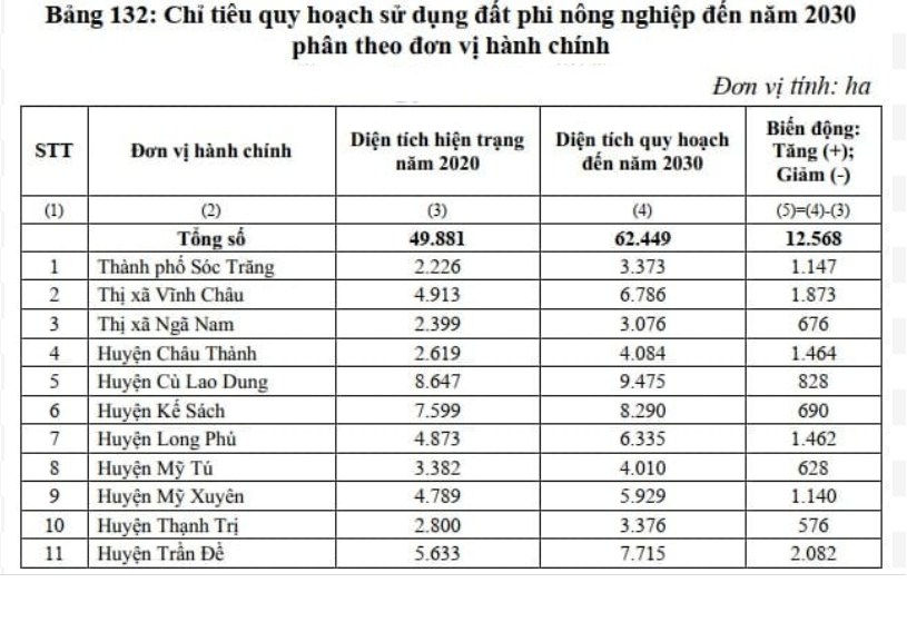 Theo đó: diện tích các loại đất phân bổ trong năm kế hoạch 2022 của thành phố Sóc Trăng được xác định với các loại đất như sau: