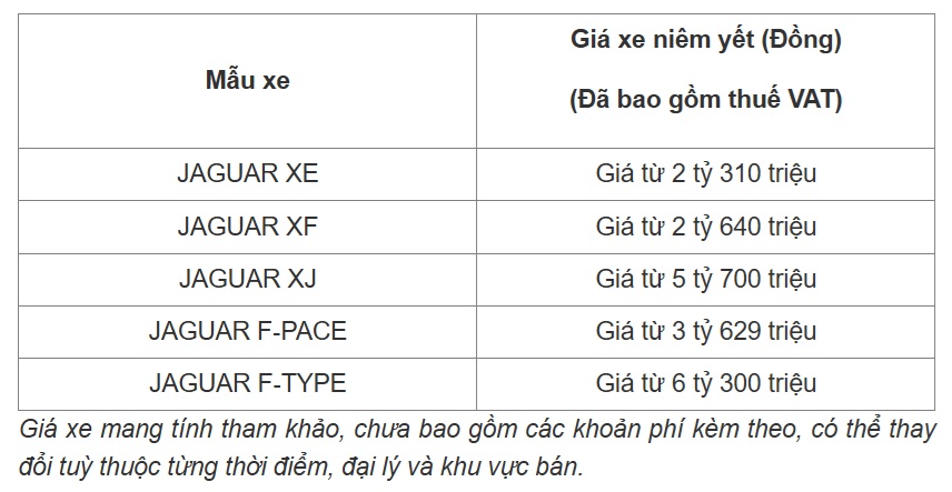 Bảng giá xe ô tô Jaguar mới nhất tại Việt Nam tháng 12/2025 sẽ được cập nhật chi tiết trong bài viết dưới đây.