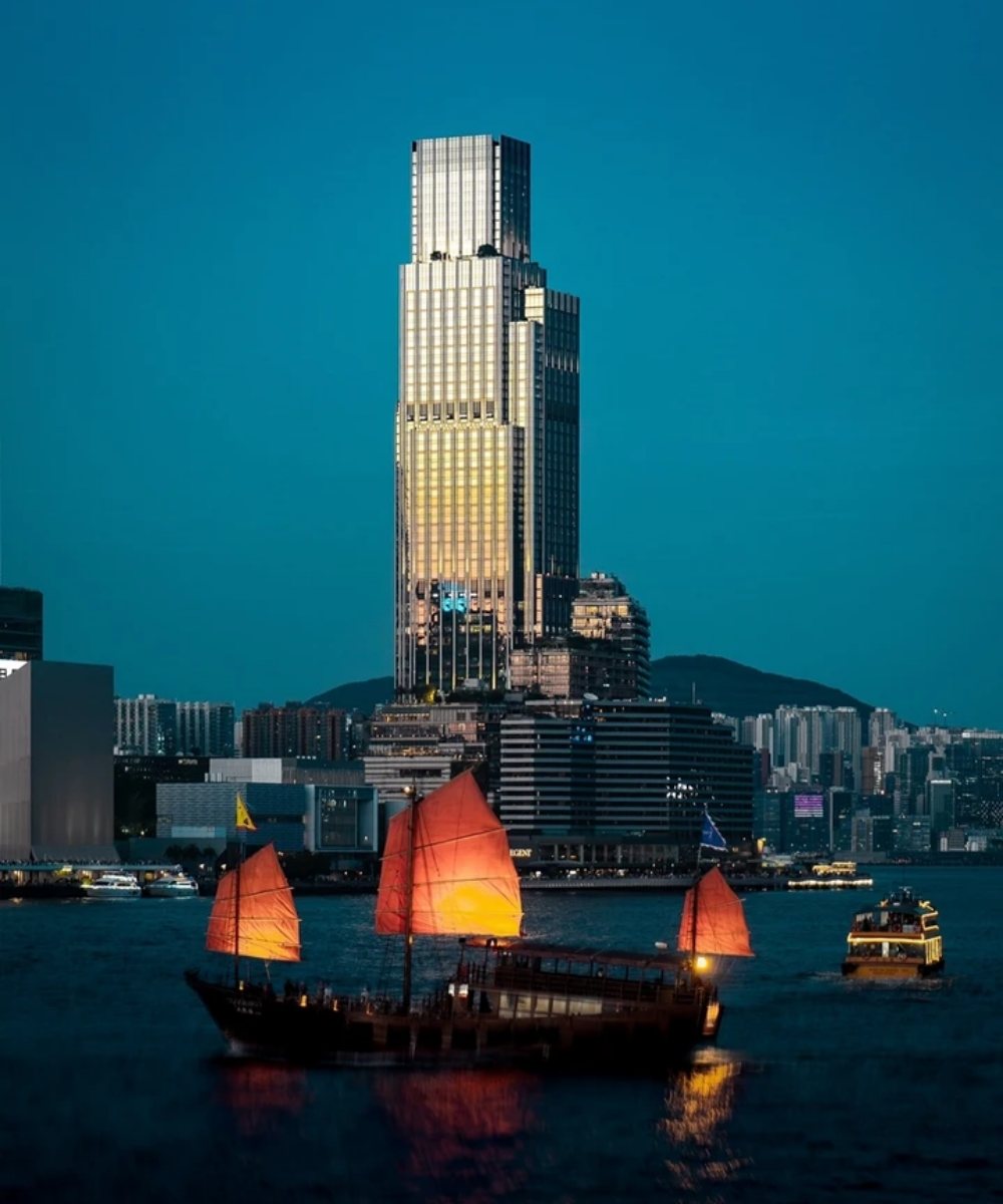 Rosewood Hong Kong - khách sạn tốt nhất thế giới năm 2025 - là tòa nhà chọc trời ven sông, một biểu tượng sang trọng bên cảng Victoria.