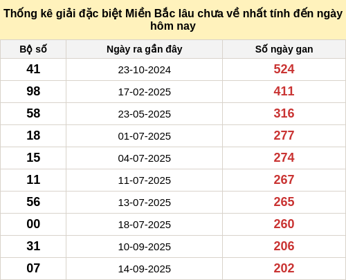 💰 Thống kê 2 số cuối GĐB lâu về nhất tính đến hôm nay: