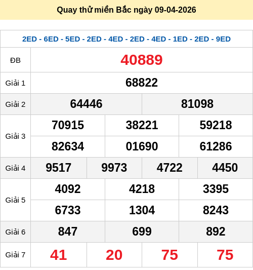 2. Thống kê lô tô miền Bắc ngày 09/04/2026 thứ 5: