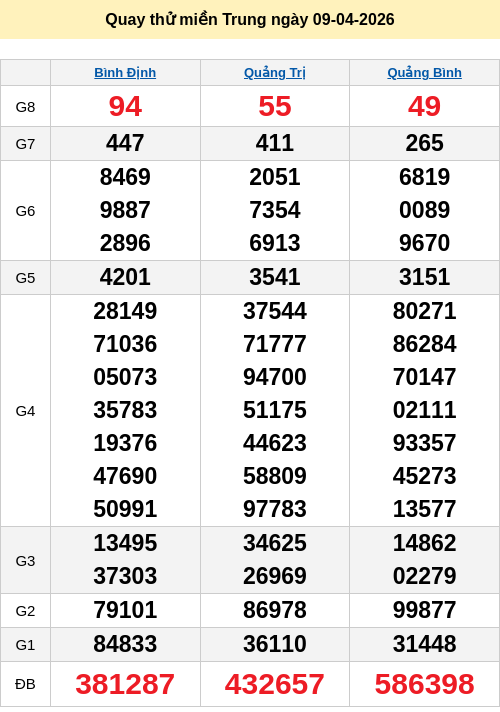 2. Thống kê lô tô miền Trung ngày 09/04/2026 thứ 5: