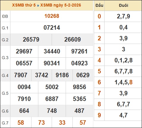Dựa vào bảng kết quả xổ số miền Bắc ngày 05/02/2026, chuyên trang xin đưa ra những nhận định thống kê kết quả XSMB chi tiết như sau: