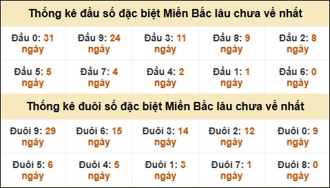 Thống kê đầu đuôi giải GĐB lâu về nhất