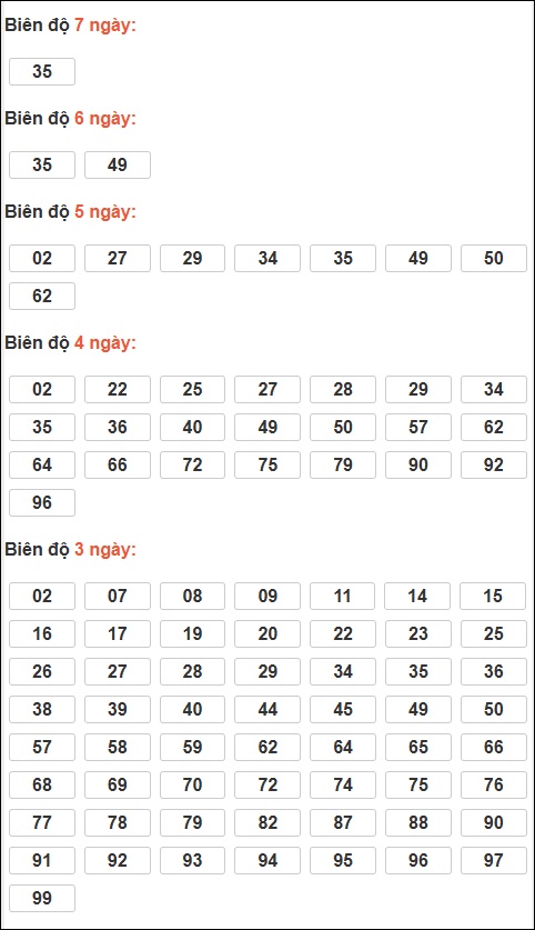 - Bảng kết quả có 07 ⇒ Thống kê loto về nhiều: 35