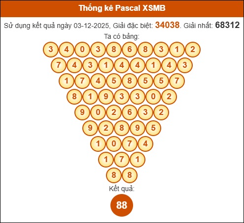 Bình luận kết quả xổ số Miền Bắc 4/12 dựa vào tam giác Pascale, được tính theo kết quả ngày hôm trước: