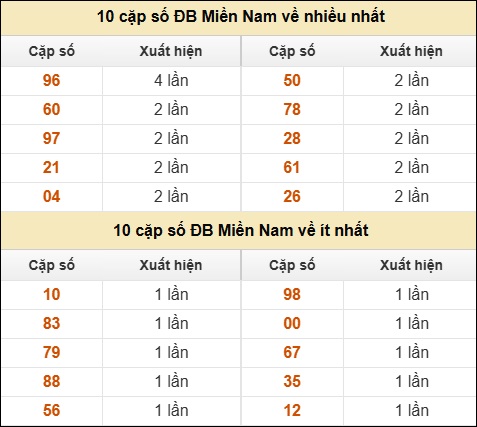 ⚡ 10 cặp số ĐB Miền Nam về nhiều nhất/ ít nhất tính đến ngày 03/02/2026: