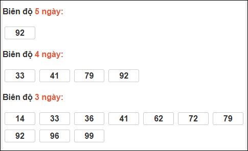 Đuôi 5: 14 ngày, Đuôi 0: 10 ngày, Đuôi 6: 7 ngày, Đuôi 2: 4 ngày, Đuôi 8: 4 ngày