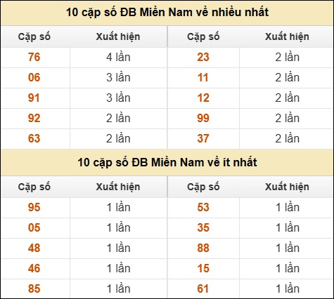 ⚡ 10 cặp số ĐB Miền Nam về nhiều nhất/ ít nhất tính đến ngày 09/02/2026: