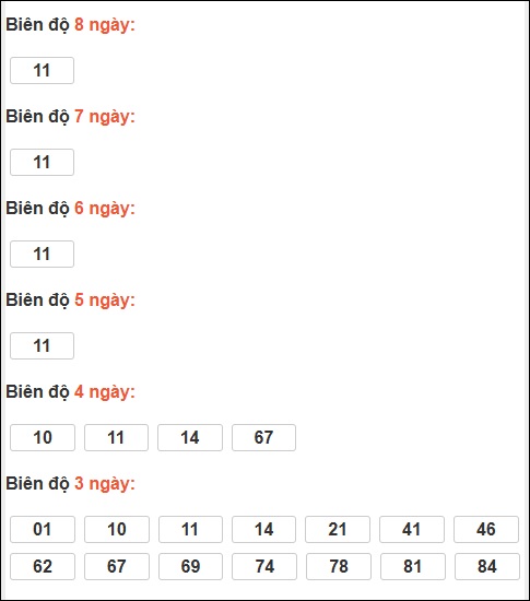 Đuôi 4: 5 ngày, Đuôi 0: 4 ngày, Đuôi 1: 4 ngày, Đuôi 2: 3 ngày, Đuôi 9: 2 ngày