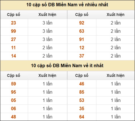 ⚡ 10 cặp số ĐB Miền Nam về nhiều nhất/ ít nhất tính đến ngày 12/01/2026: