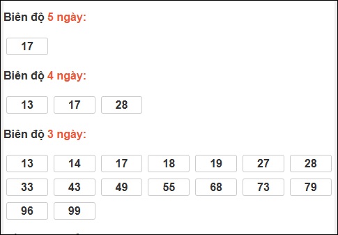 Đầu 0: 17 ngày, Đầu 7: 9 ngày, Đầu 4: 6 ngày, Đầu 6: 4 ngày, Đầu 1: 2 ngày