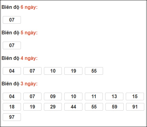 Đuôi 5: 11 ngày, Đuôi 0: 7 ngày, Đuôi 6: 4 ngày, Đuôi 4: 2 ngày, Đuôi 1: 1 ngày