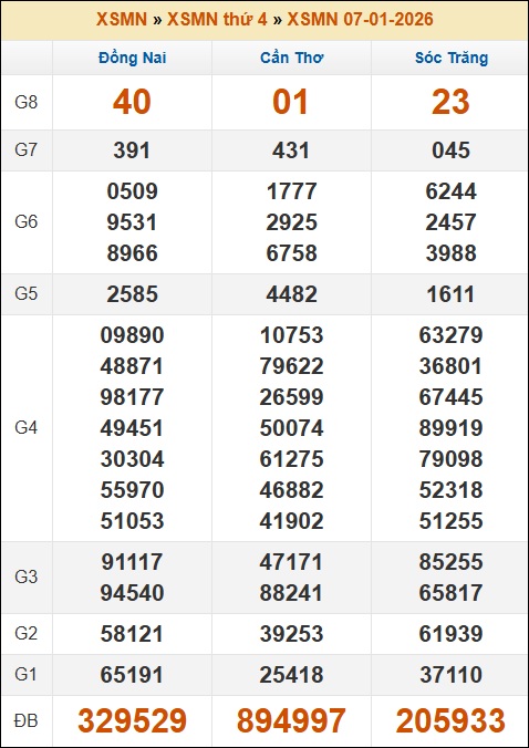 1. ✔️ Xem lại KQXSMN thứ 4 tuần trước 07/01/2026