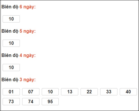 Đuôi 6: 13 ngày, Đuôi 0: 9 ngày, Đuôi 2: 6 ngày, Đuôi 1: 4 ngày, Đuôi 4: 2 ngày