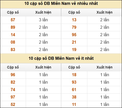 ⚡ 10 cặp số ĐB Miền Nam về nhiều nhất/ ít nhất tính đến ngày 08/01/2026: