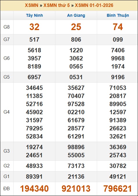 1. ✔️ Xem lại KQXSMN thứ 5 tuần trước 01/01/2026