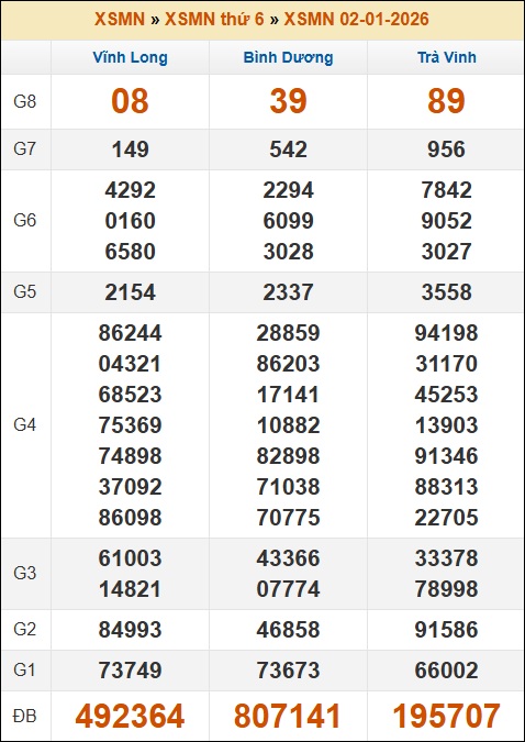 Kết quả xổ số Miền Nam ngày 02/01/2026 thứ 6 tuần trước