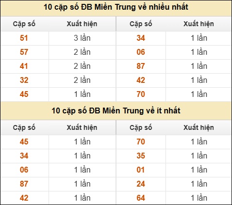 ⚡ 10 cặp số ĐB XSMT về nhiều nhất/ ít nhất tính dến ngày 04/02/2026: