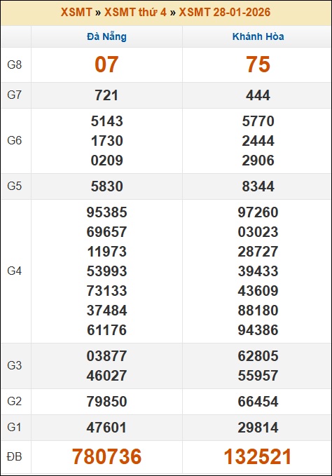 Kết quả xổ số Miền Trung 28/01/2026 thứ 4 tuần trước