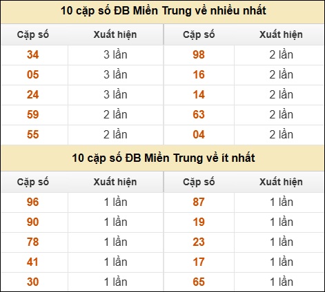 ⚡ 10 cặp số ĐB XSMT về nhiều nhất/ ít nhất tính đến ngày 05/02/2026:
