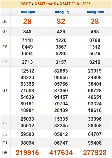 Kết quả xổ số Miền Trung 29/01/2026 thứ 5 tuần trước