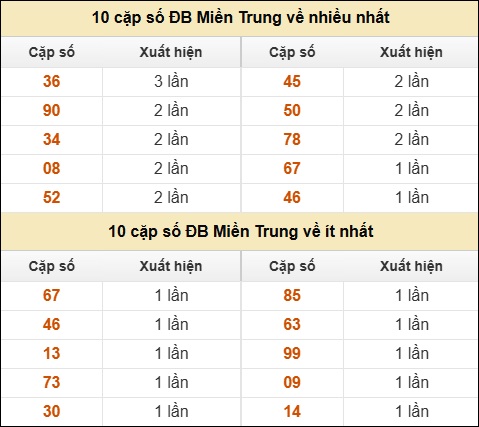 ⚡ 10 cặp số ĐB XSMT về nhiều nhất/ ít nhất tính dến ngày 06/02/2026: