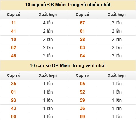 ⚡ 10 cặp số ĐB XSMT về nhiều nhất/ ít nhất tính dến ngày 08/02/2026: