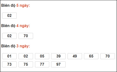 Đuôi 2: 20 ngày, Đuôi 6: 16 ngày, Đuôi 3: 5 ngày, Đuôi 1: 3 ngày, Đuôi 5: 3 ngày