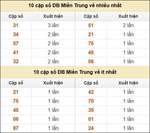 ⚡ 10 cặp số ĐB XSMT về nhiều nhất/ ít nhất tính dến ngày 14/01/2026: