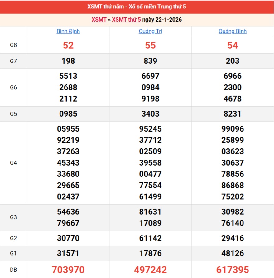 Bảng kết quả kỳ trước 22/01/2026