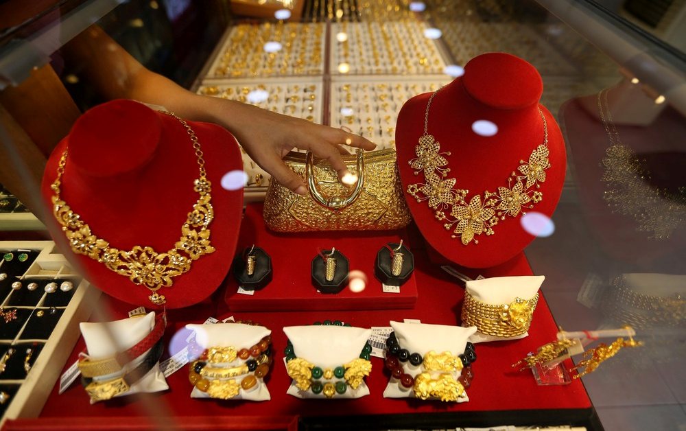 Trang sức vàng được bày bán tại tiệm kim hoàn ở Yangon, Myanmar. Ảnh: THX/TTXVN