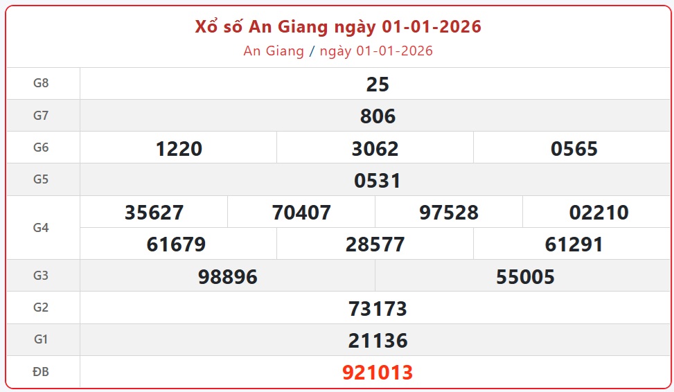 Hãy theo dõi kết quả xổ số An Giang hôm nay 1/1/2026 để cập nhật kết quả sớm nhất.