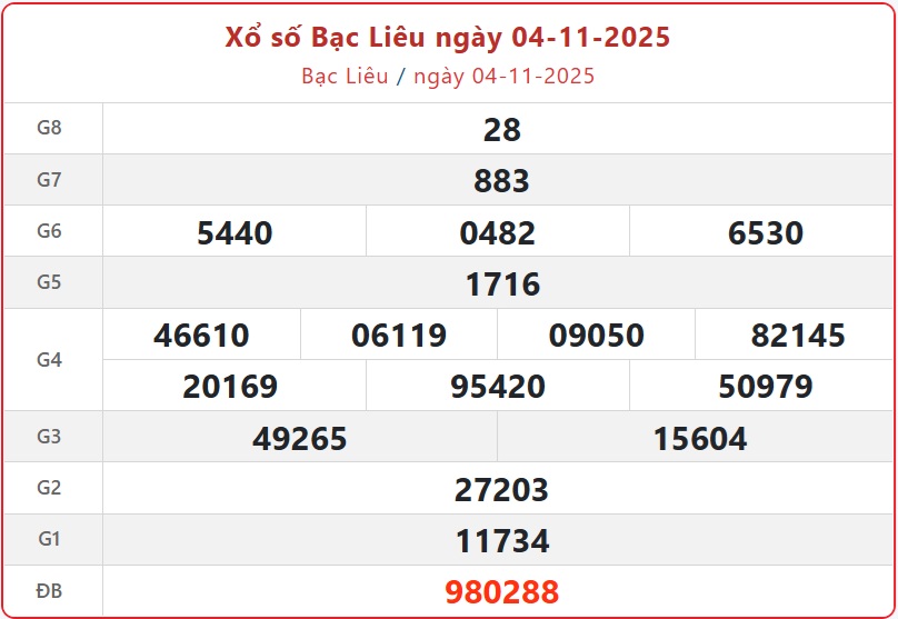 Theo dõi kết quả xổ số Bạc Liêu hôm nay 4/11/2025 nhanh chóng và chính xác nhất để không bỏ lỡ thời gian nhận thưởng.