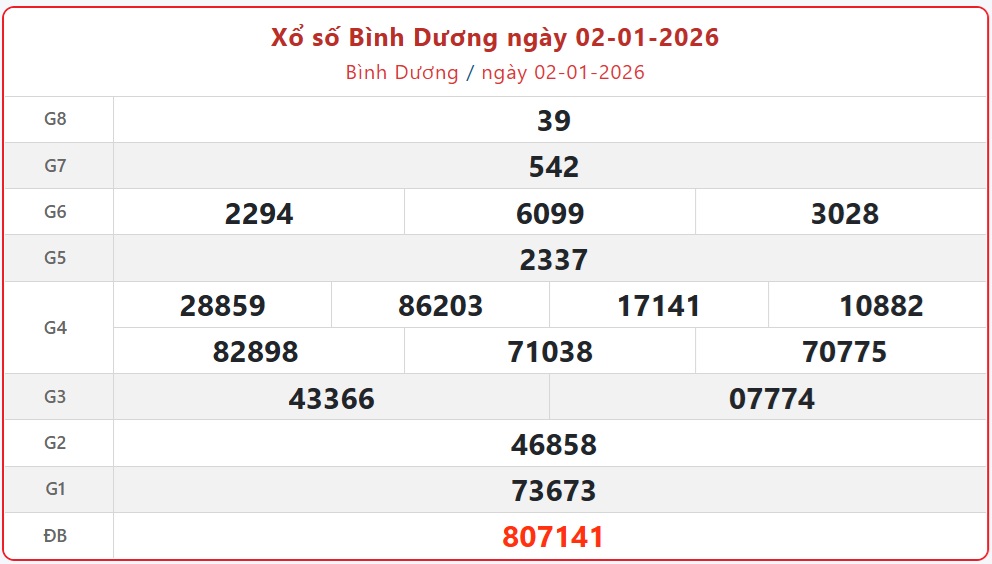 Theo dõi kết quả xổ số Bình Dương hôm nay ngày 2/1/2026 nhanh chóng và chính xác nhất để không bỏ lỡ thời gian nhận thưởng.