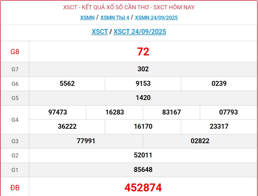 Kết quả xổ số Cần Thơ Thứ Tư ngày 24/9/2025