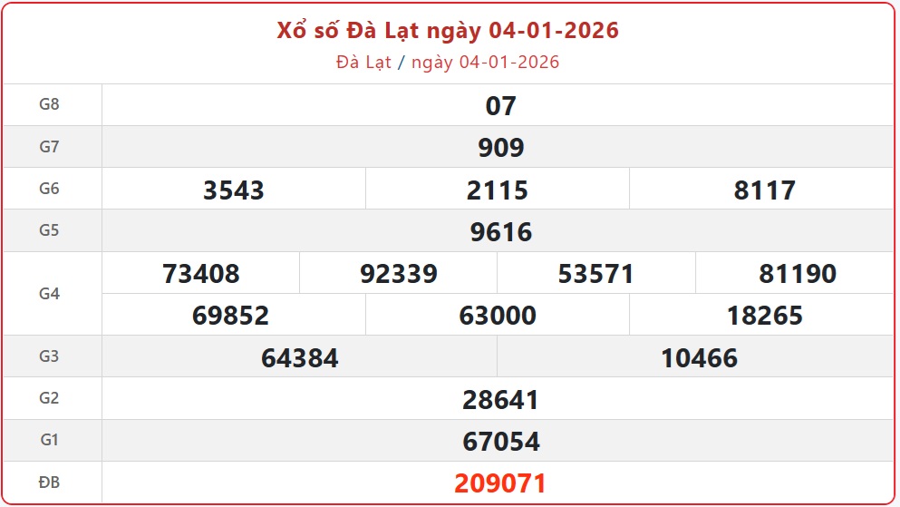 Theo dõi kết quả xổ số Đà Lạt hôm nay 4/1/2026nhanh chóng và chính xác nhất để không bỏ lỡ thời gian nhận thưởng.