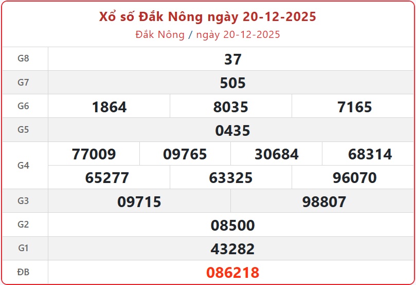 Xem Kết quả xổ số Đắk Nông ngày 20/12/2025
