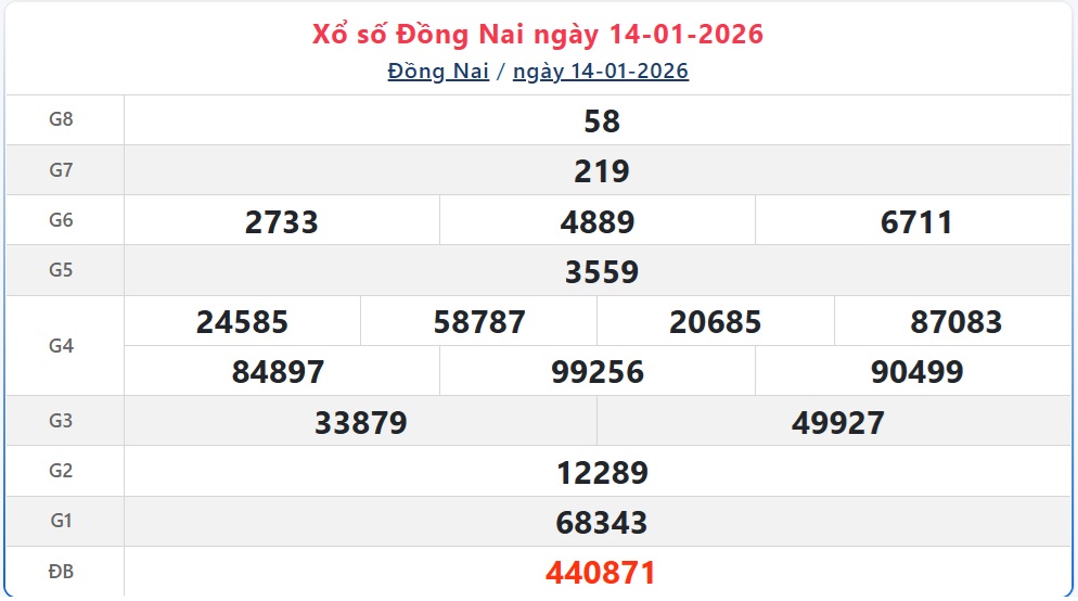 Theo dõi kết quả xổ số Đồng Nai hôm nay 14/1/2026 nhanh chóng và chính xác nhất