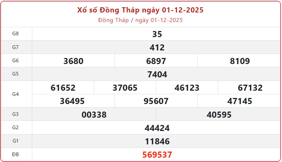 Xem kết quả xổ số Đồng Tháp ngày 1/12/2025