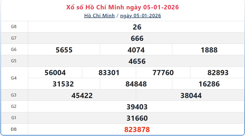 Kết quả xổ số Hồ Chí Minh ngày 5/1/2026