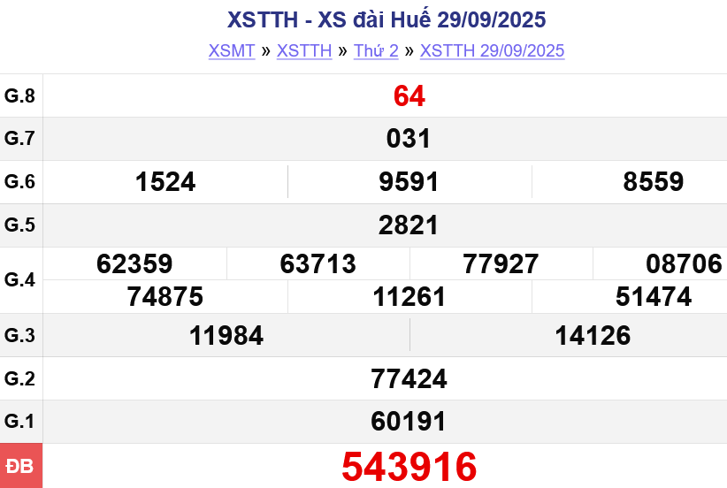 Theo dõi kết quả xổ số Huế hôm nay 13/10/2025 để cập nhật kết quả sớm nhất.