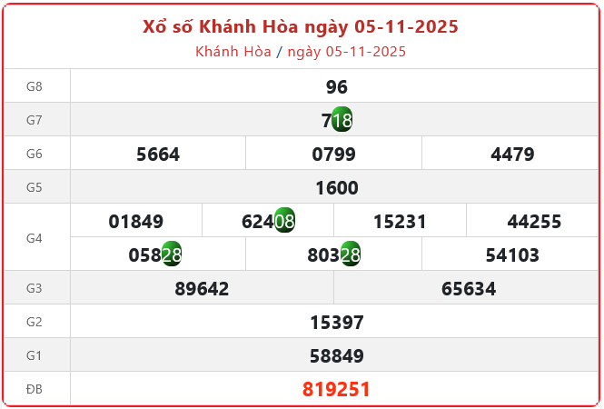 Xem Kết quả xổ số Khánh Hòa ngày 5/11/2025