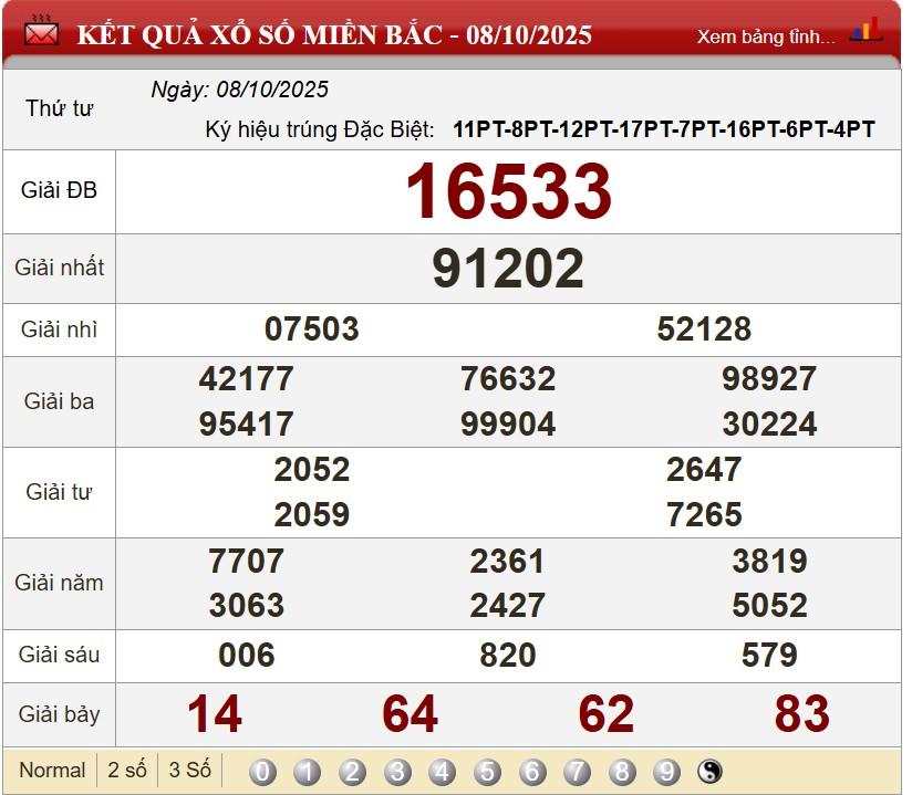 - Kết quả xổ số miền Bắc ngày 8/10. KQXSMB 8/10/2025. XSMB 8/10