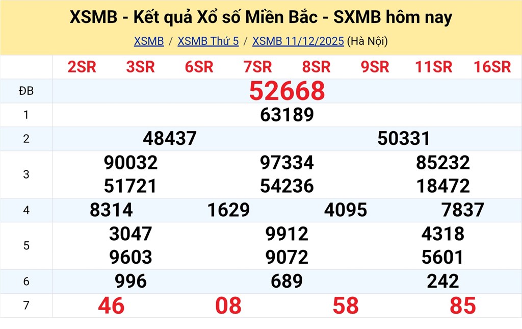 Kết quả Xổ số miền Bắc ngày 11/12/2025