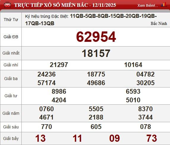 Kết quả Xổ số miền Bắc ngày 12/11/2025