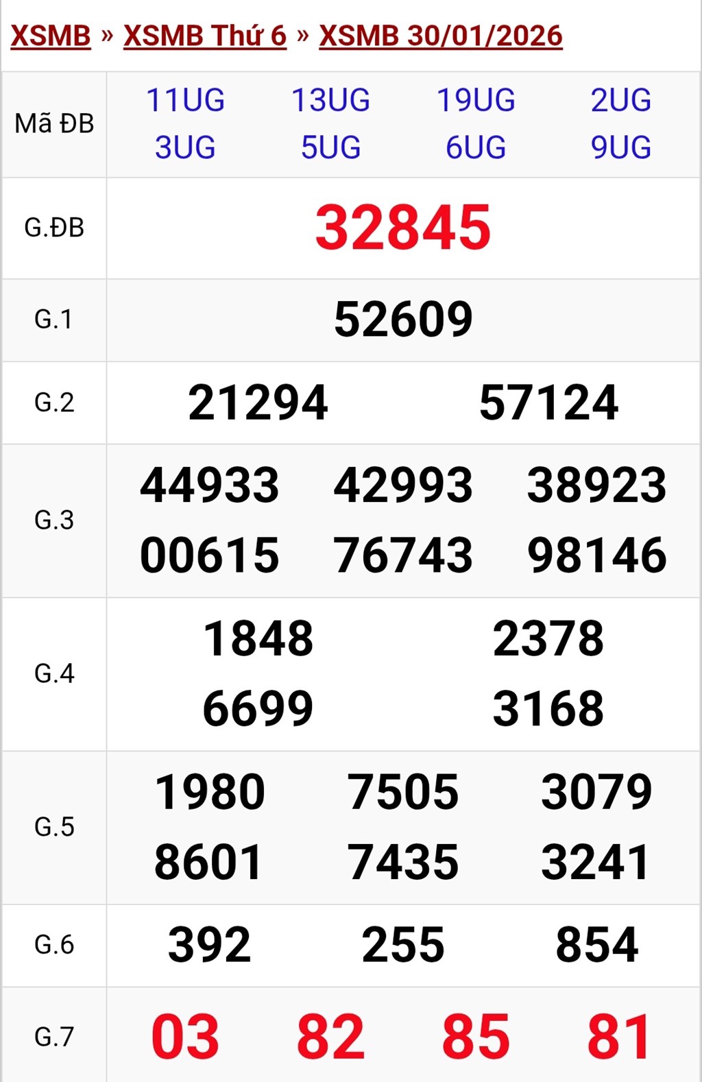 Kết quả Xổ số miền Bắc ngày 30/1/2026