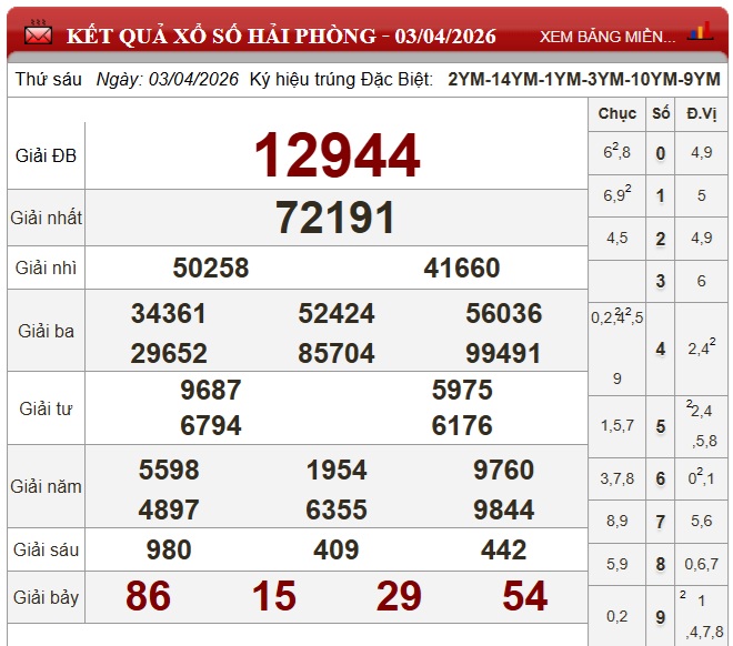Kết quả Xổ số miền Bắc ngày 3/4/2026