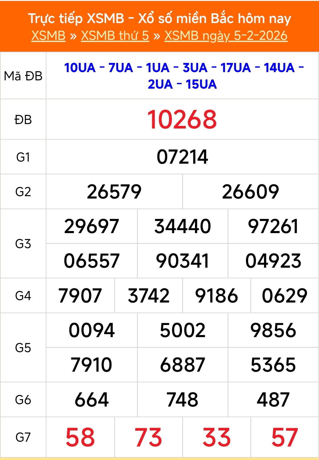Kết quả Xổ số miền Bắc ngày 5/2/2026